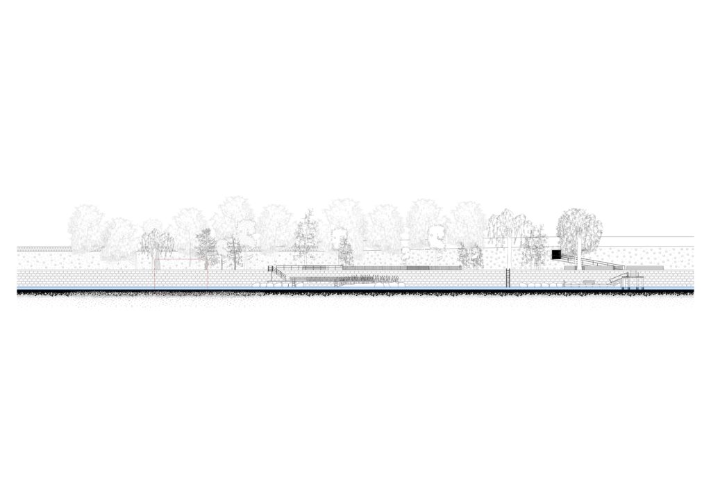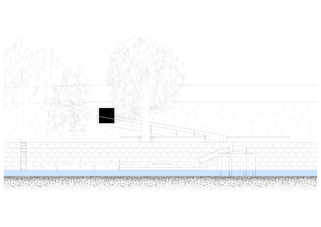 Après avoir pris de nombreuses mesures sur le site où nous allions créér notre House, soit aux Bains de Saugy à Genthod, près de Versoix, , je les ai exploitées afin de réaliser une élévation des lieux.