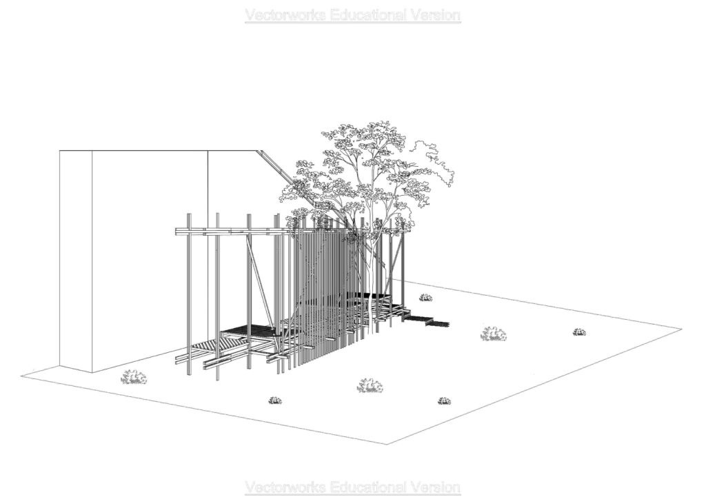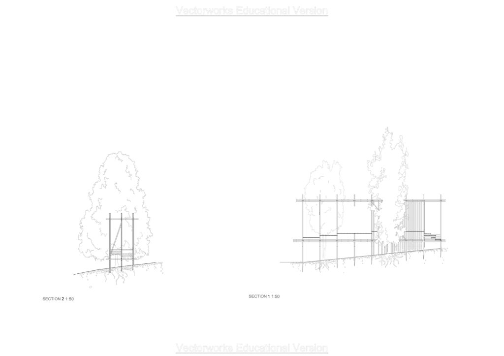 Top view in 1:50 with the cutting lines for the sections.