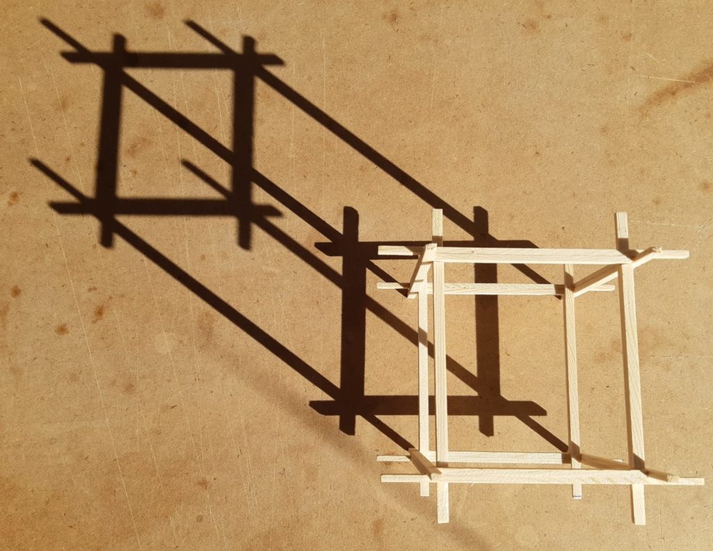 Junctions and edges shape (two wooden planks for a same edge) have been thinking based on a cube we did before at 1:10 scale for the wood dimensions.