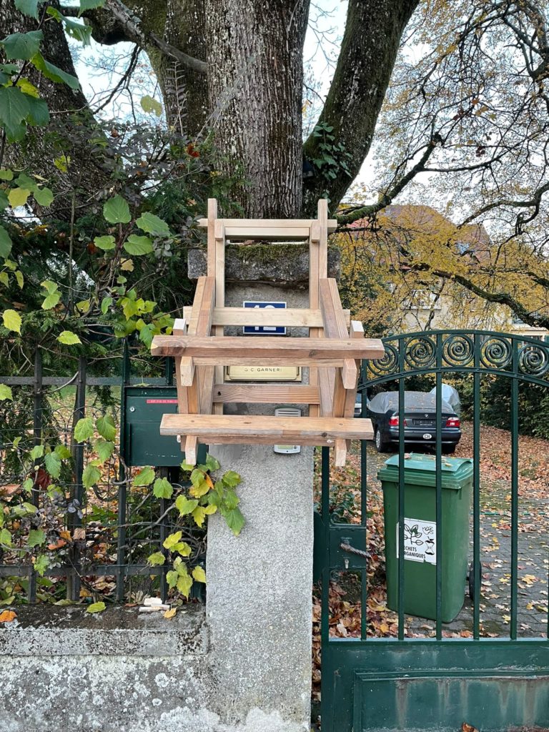 The second frame complete the structure using nothing else to be attached to the first frame. This one frame the common and human use of the letterbox. Alone, it seems like a straight and rectangular structure but when this second frame fits into the first one, it takes a 30 degrees angle.