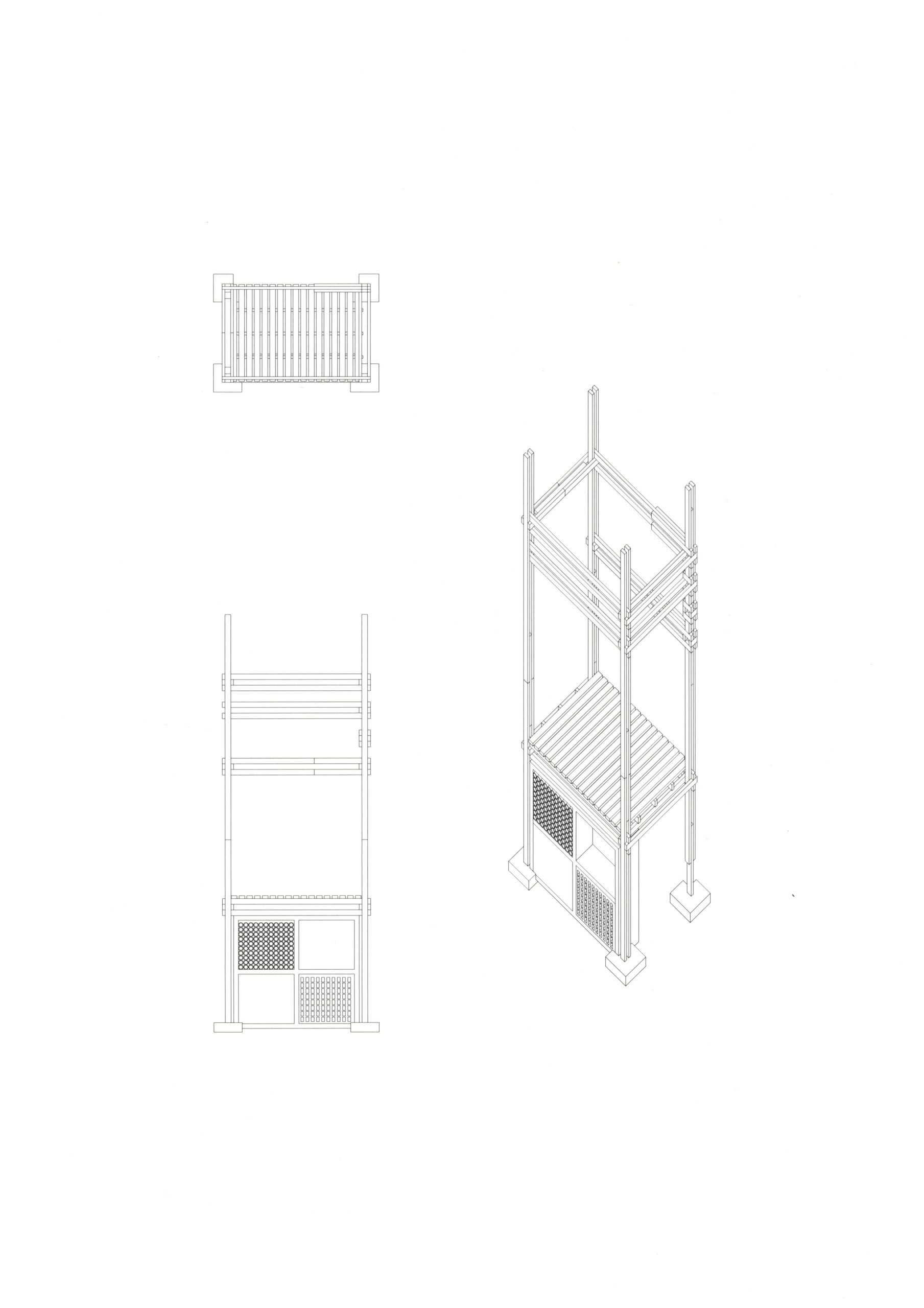 Underneath our roof, we created a series of small moments that contribute to our urban garden. The moments are further documented in the following drawings.