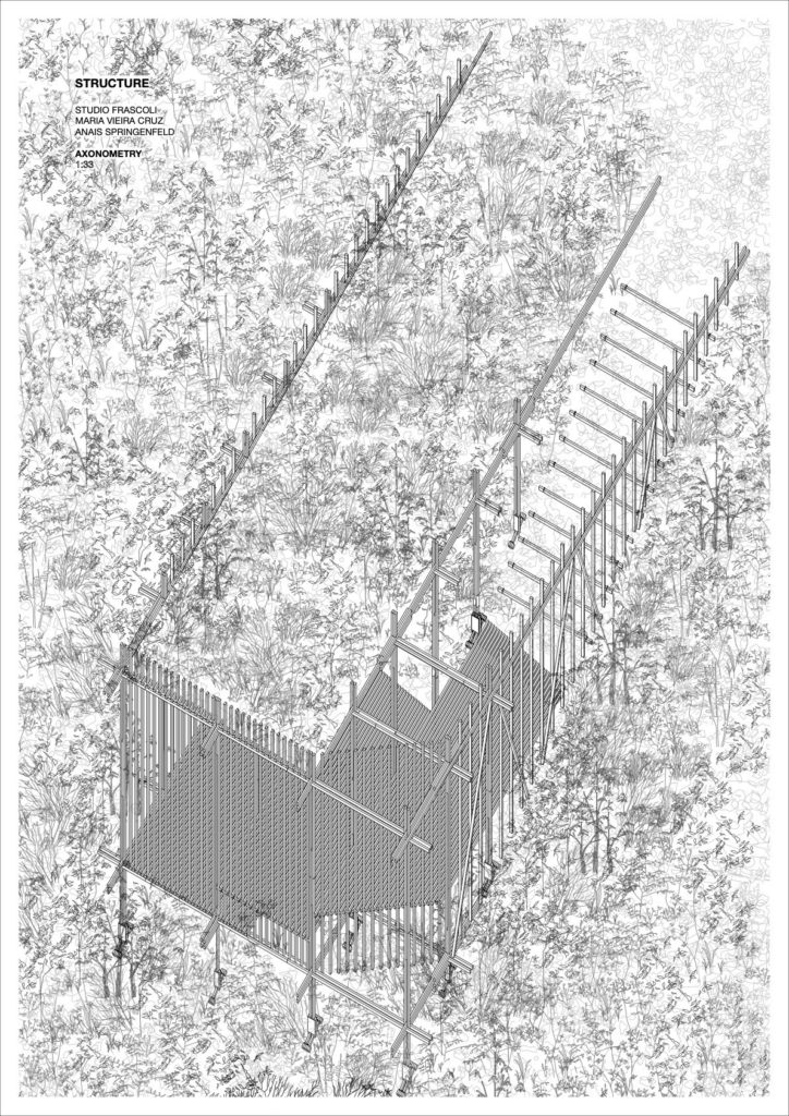 The seats and the frame invite you to observe the trees in the distance.